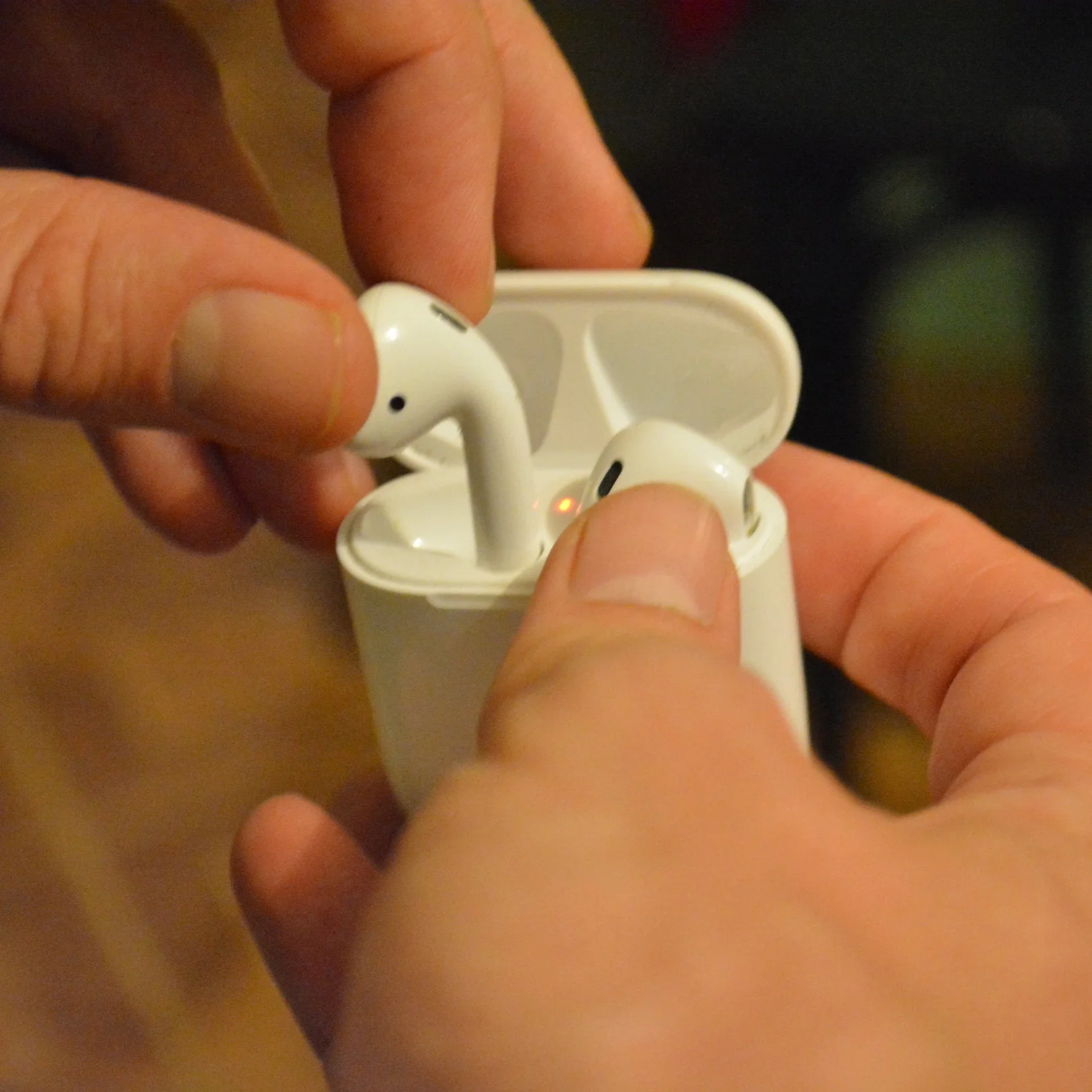 It is really difficult to put AirPods away, when I suddenly need to talk to other people. Before I would just quickly pull the earpieces from the ears and let them hang on their wires. AirPods need either a safe pocket, which I don’t think I have, or both hands to put them into the case.